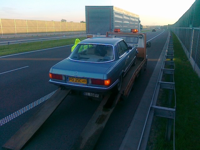 Ułańska fantazja poniosła mnie dzisiaj nieco na A2 niedaleko Łowicza co zakończyło się rozerwaniem węża olejowego od skrzyni biegów w MB W107 350SLC przy prędkości 170km/h.