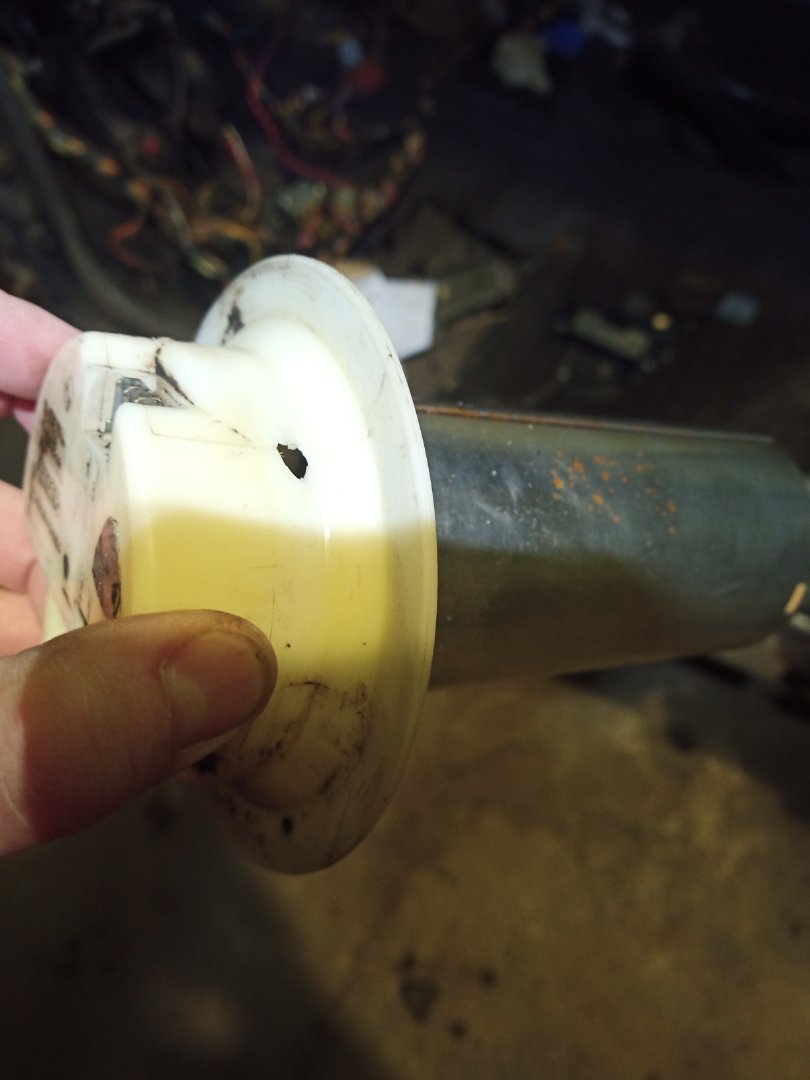 Niestety pływak nie przeżył demontażu. Zrobiłem w nim dziurę śrubokrętem.